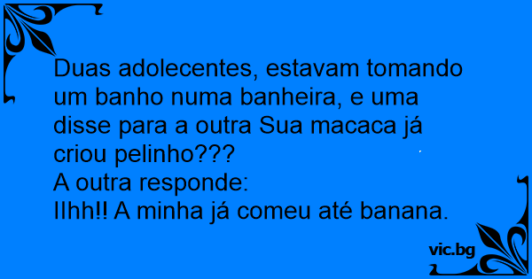 Duas adolecentes, estavam tomando um banho numa banheira, e uma disse para a outra Sua macaca já criou pelinho???