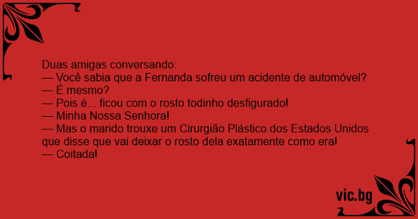 — Você sabia que a Fernanda sofreu um acidente de automóvel?
