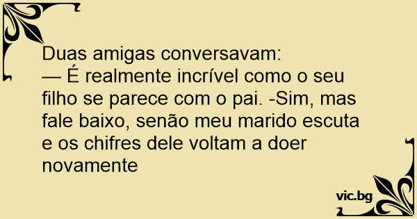 — É realmente incrível como o seu filho se parece com o pai. -Sim, mas fale baixo, senão meu marido escuta e os chifres dele voltam a doer novamente