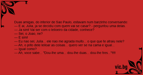 Duas amigas, do interior de Sao Paulo, estavam num barzinho conversando: