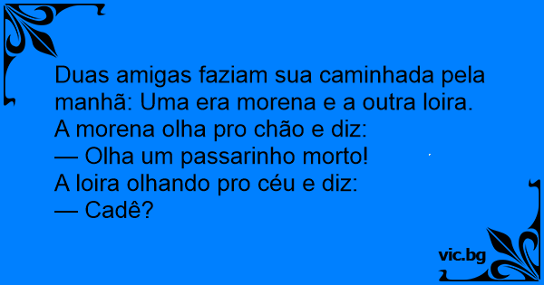 Duas amigas faziam sua caminhada pela manhã: Uma era morena e a outra loira. A morena olha pro chão e diz: