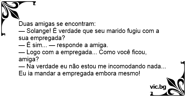 — Solange! É verdade que seu marido fugiu com a sua empregada?