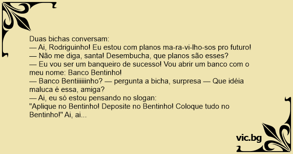 — Eu vou ser um banqueiro de sucesso! Vou abrir um banco com o meu nome: Banco Bentinho!