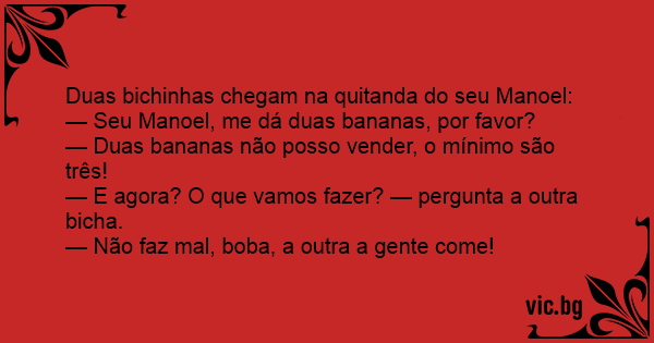 — Seu Manoel, me dá duas bananas, por favor?