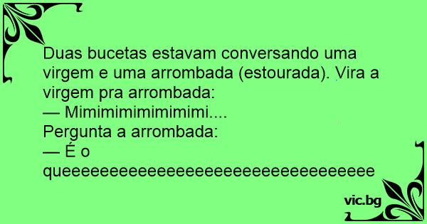 Duas bucetas estavam conversando uma virgem e uma arrombada (estourada). Vira a virgem pra arrombada: