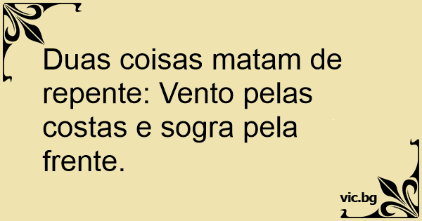 Duas coisas matam de repente: Vento pelas costas e sogra pela frente.