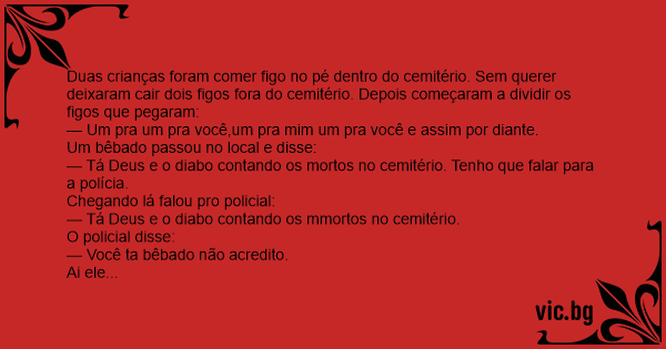— Tá Deus e o diabo contando os mmortos no cemitério.