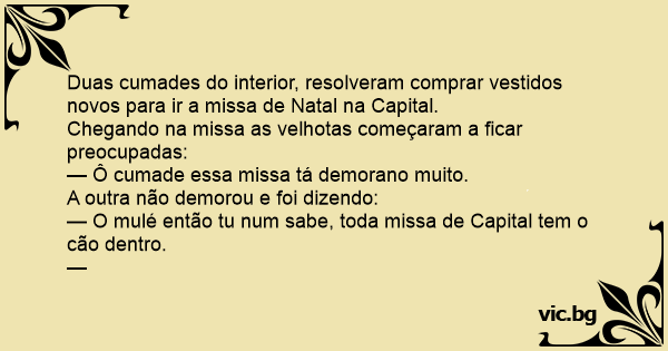 — O mulé então tu num sabe, toda missa de Capital tem o cão dentro.