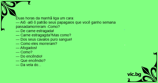 — Alô -alô ô patrão seus papagaios que você ganho semana passadamorreram -Como?