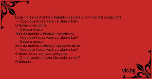 Duas horas da manhã o bêbado liga para o dono do bar e pergunta: