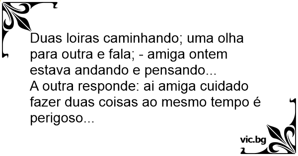 Duas loiras caminhando; uma olha para outra e fala; - amiga ontem estava andando e pensando...
