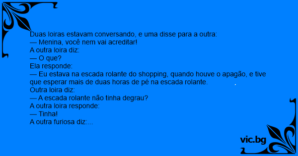 — Eu estava na escada rolante do shopping, quando houve o apagão, e tive que esperar mais de duas horas de pé na escada rolante.