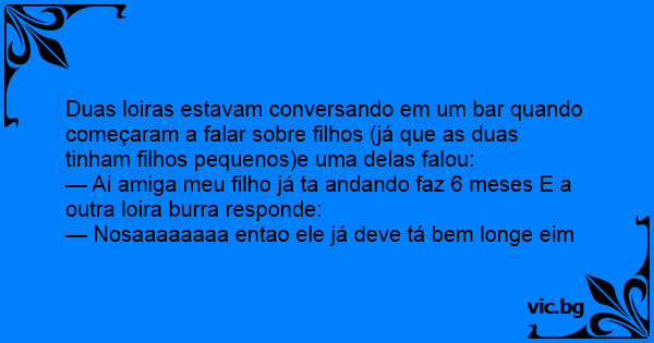— Ai amiga meu filho já ta andando faz 6 meses E a outra loira burra responde: