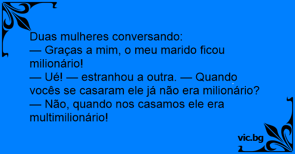 — Ué! — estranhou a outra. — Quando vocês se casaram ele já não era milionário?