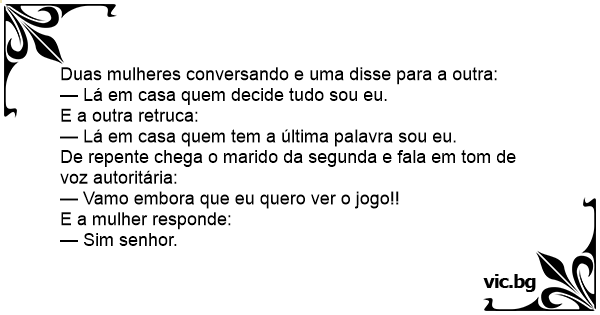 De repente chega o marido da segunda e fala em tom de voz autoritária: