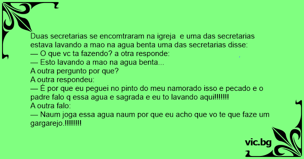 — Naum joga essa agua naum por que eu acho que vo te que faze um gargarejo.!!!!!!!!