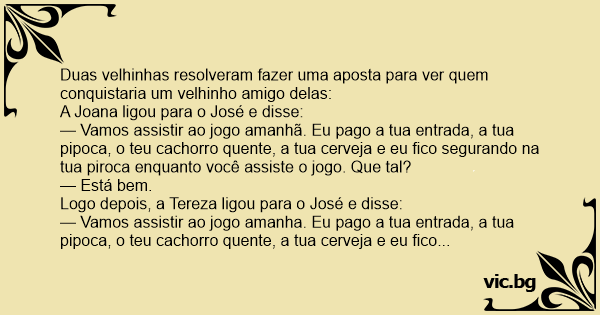 — Vamos assistir ao jogo amanhã. Eu pago a tua entrada, a tua pipoca, o teu сасhоrrо quente, a tua cerveja e eu fico segurando na tua piroca enquanto você assiste o jogo. Que tal?