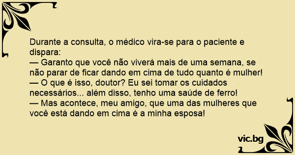 Durante a consulta, o médico vira-se para o paciente e dispara: