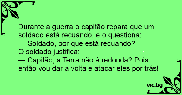 — Capitão, a Terra não é redonda? Pois então vou dar a volta e atacar eles por trás!