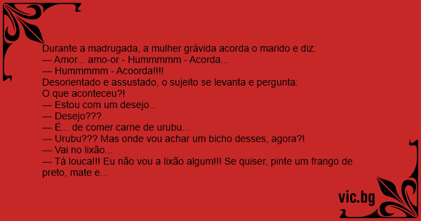 Durante a madrugada, a mulher grávida acorda o marido e diz: