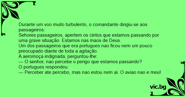 Durante um voo muito turbulento, o comandante dirigiu-se aos passageiros:
