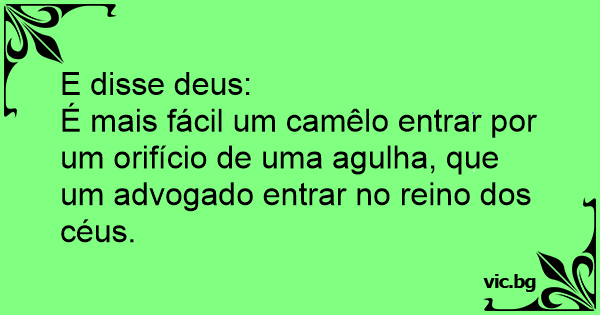 É mais fácil um camêlo entrar por um orifício de uma agulha, que um advogado entrar no reino dos céus.