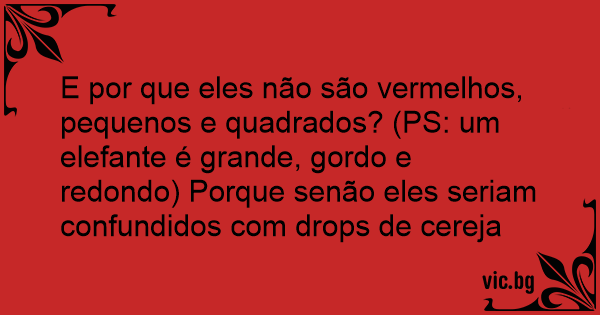 E por que eles não são vermelhos, pequenos e quadrados? (PS: um elefante é grande, gordo e redondo) Porque senão eles seriam confundidos com drops de cereja