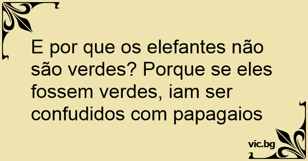 E por que os elefantes não são verdes? Porque se eles fossem verdes, iam ser confudidos com papagaios
