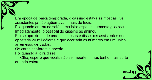 Foi quando entrou no salão uma loira espetacularmente gostosa. Imediatamente, o pessoal do cassino se animou.