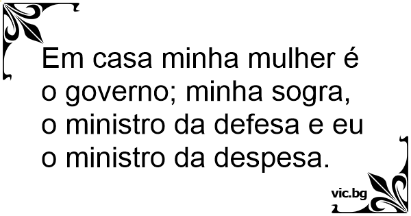 Em casa minha mulher é o governo; minha sogra, o ministro da defesa e eu o ministro da despesa.