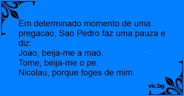 Em determinado momento de uma pregacao, Sao Pedro faz uma pauza e diz:
