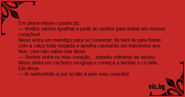 — Senhor entra no meu coração....(repetiu milhares de vezes) Nisso entra um сасhоrrо na igreja e começa a lamber o cú dele.