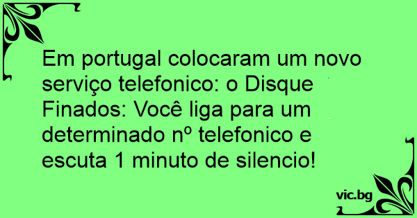 Em portugal colocaram um novo serviço telefonico: o Disque Finados: Você liga para um determinado nº telefonico e escuta 1 minuto de silencio!