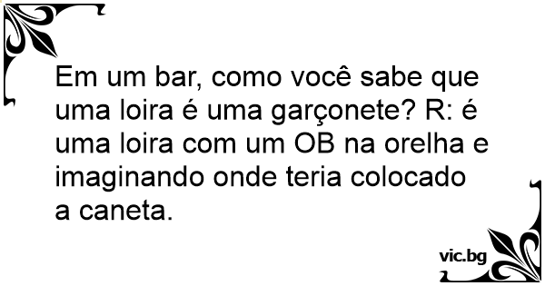 Em um bar, como você sabe que uma loira é uma garçonete? R: é uma loira com um OB na orelha e imaginando onde teria colocado a caneta.