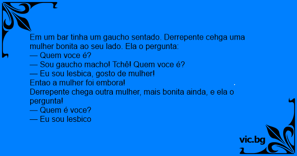 Em um bar tinha um gaucho sentado. Derrepente cehga uma mulher bonita ao seu lado. Ela o pergunta: