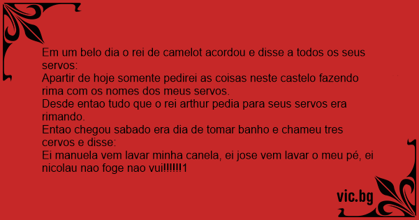Desde entao tudo que o rei arthur pedia para seus servos era rimando.