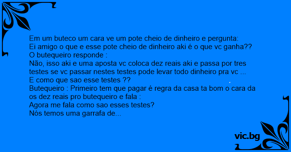 Em um buteco um cara ve um pote cheio de dinheiro e pergunta: