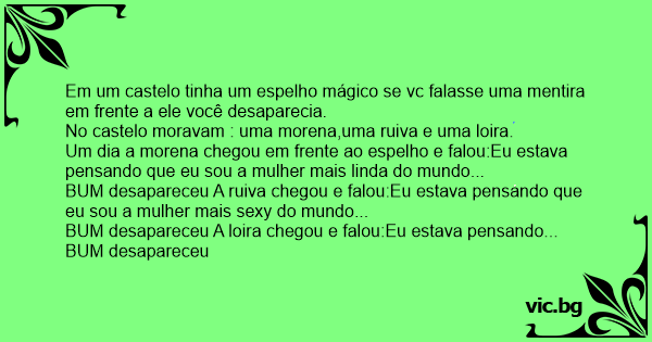 Em um castelo tinha um espelho mágico se vc falasse uma mentira em frente a ele você desaparecia.