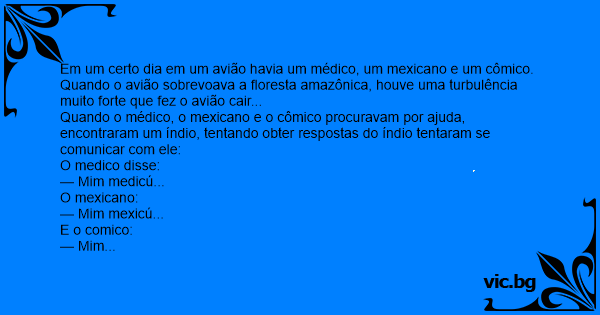 Em um certo dia em um avião havia um médico, um mexicano e um cômico.