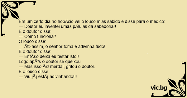 Em um certo dia no hopício vei o louco mias sabido e disse para o medico: