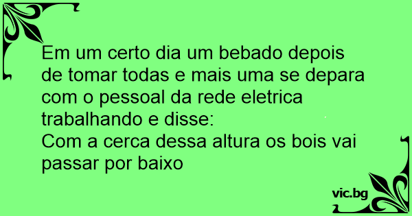 Em um certo dia um bebado depois de tomar todas e mais uma se depara com o pessoal da rede eletrica trabalhando e disse: