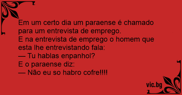 E na entrevista de emprego o homem que esta lhe entrevistando fala: