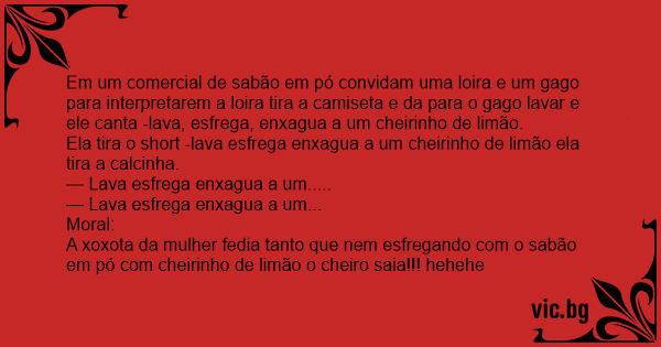 A xоxота da mulher fedia tanto que nem esfregando com o sabão em pó com cheirinho de limão o cheiro saia!!! hehehe