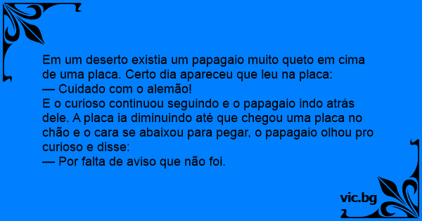 Em um deserto existia um papagaio muito queto em cima de uma placa. Certo dia apareceu que leu na placa: