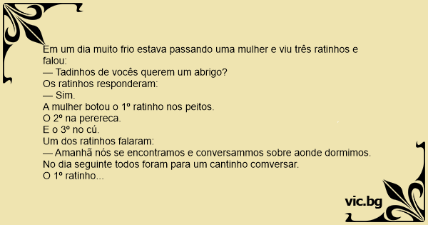 Em um dia muito frio estava passando uma mulher e viu três ratinhos e falou: