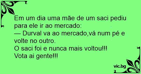 Em um dia uma mãe de um saci pediu para ele ir ao mercado: