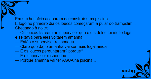 Em um hospício acabaram de construir uma piscina.