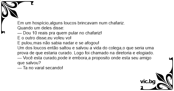 Em um hospício,alguns loucos brincavam num chafariz.