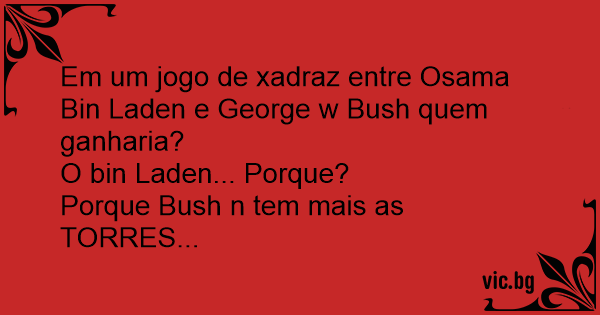 Em um jogo de xadraz entre Osama Bin Laden e George w Bush quem ganharia?