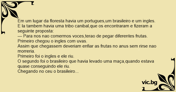 Em um lugar da floresta havia um portugues,um brasileiro e um ingles.